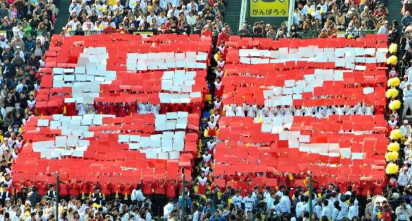 Some even put on large-scale performances like coordinated card stunts in the stands.